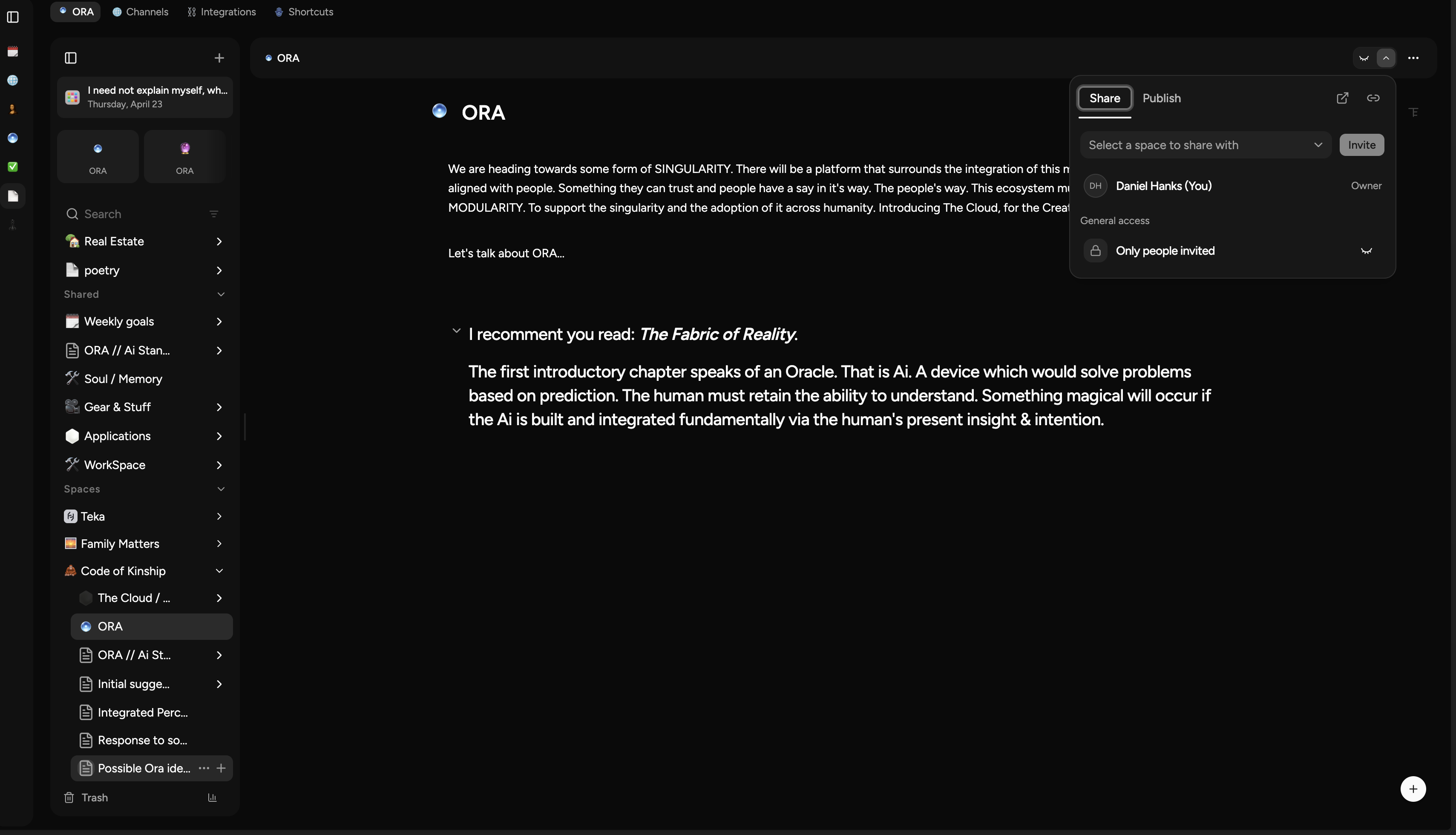 Fix — I made a page in a space and it doesn't show the space shared to that doc, that should be automatic in this sequence.